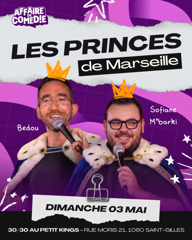 De pleutre à prince, Sofiane est Bedou on gravit des montagnes pour atteindre le plat pays. Un blanc qu’on prend pour un arabe, un arabe qui fait tout comme les blancs. Voilà le cocktail magique pour passer une heure de rire avec les princes de Marseille, les frères d’une autre vie : Bedou et Sofiane M’barki